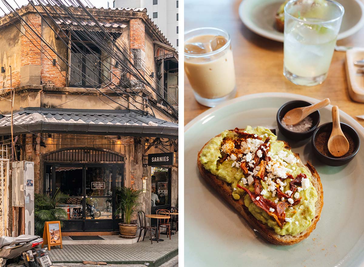Sarnies Bangkok is ook weer een plaatje en gevestigd in een oud, sfeervol Thais gebouw. Bij Sarnies kun je terecht voor lekkere koffie en een Westers ontbijt of lunch, vaak met een creatieve Thaise twist. Je kunt hier ook terecht voor een diner.