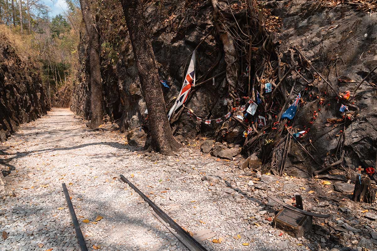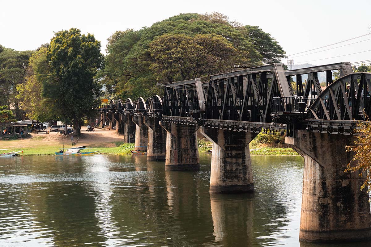 Na de Hellfire Pass was het tijd voor de Tham Krasae Death Railway Bridge, één van de technische hoogstandjes van de Death Railway. Deze brug is 400 meter lang en is gebouwd tegen een steile klif aan de oever van de Kwae Noi-rivier. Tweeduizend krijgsgevangenen en lokale arbeiders bouwen de brug in slechts zeventien dagen. Toen de eerste trein er overheen heet, stortte een deel van de brug in en moest hij opnieuw worden opgebouwd. Je kunt nu een stukje over de brug lopen en een grot met Boeddhabeelden bezoeken. De uitzichten over de groene, bergachtige omgeving zijn hier bovendien erg mooi.