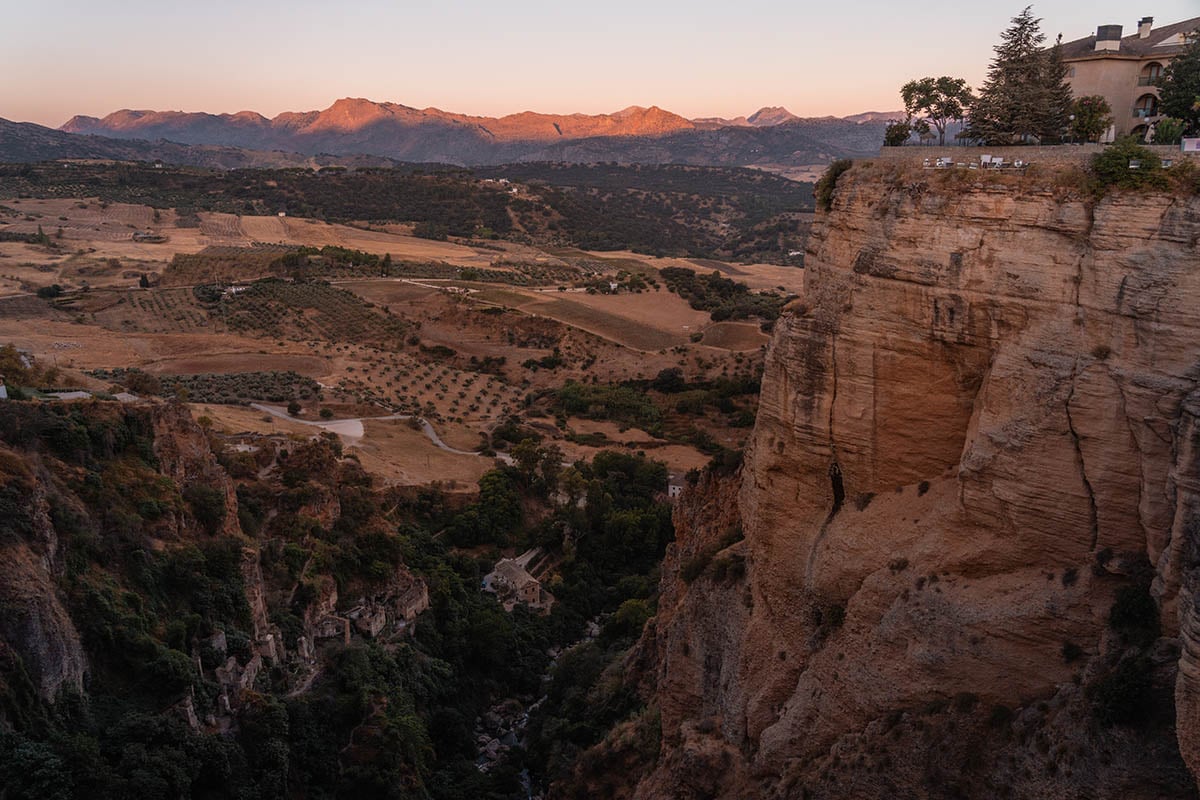 Op weg naar mijn hotel stak ik de Puente Nuevo over. Deze 98 meter hoge brug uit 1793 overspant de twee stadshelften van Ronda, La Ciudad en Mercadillo. Eén blik in de diepte en ik was verkocht. De ligging van Ronda is spectaculair. Vanaf de brug kijk je de grillige El Tajo Gorge in, zie je de rivier Río Guadalevín stromen (en honderden vogels vliegen) en heb je een weids uitzicht over de bergachtige omgeving. Ik heb heel wat tijd doorgebracht met staan op de brug en naar beneden kijken. Van alle kanten zijn de uitzichten even mooi en kun je goed zien hoe Ronda is gebouwd op twee rotsplateaus. Ook een grote aanrader bij zonsopkomst!