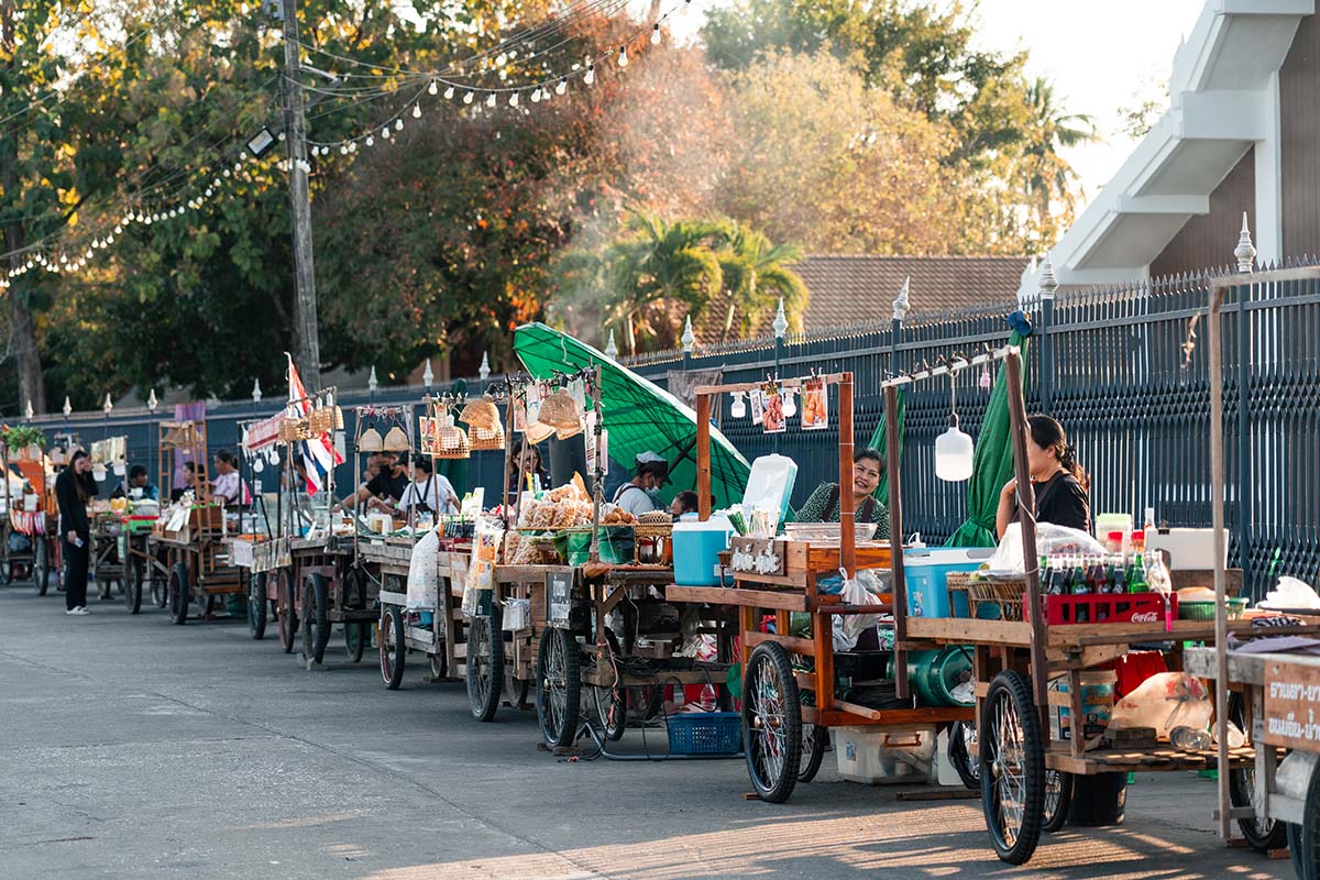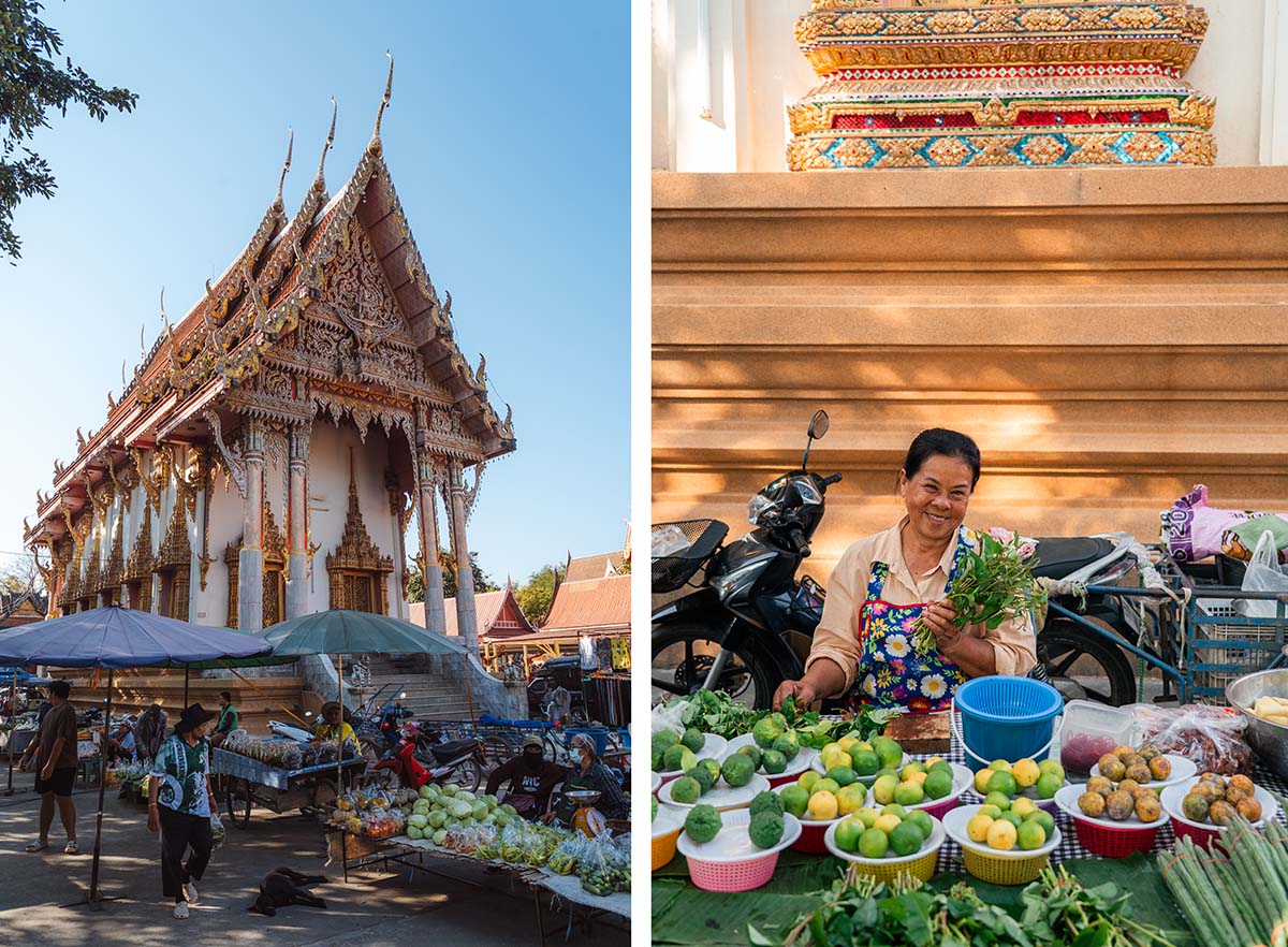 Naast de tempel ligt de lokale markt van Sukhothai, die ’s ochtends vroeg op zijn drukst is. De mensen zijn enorm hartelijk, dus neem even de tijd om rond te lopen en de vele verse producten te bekijken.