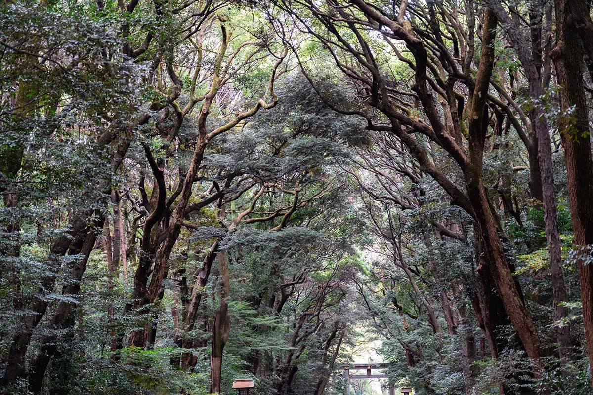 In het weekend is het hier enorm druk (er vinden hier veel traditionele Shinto-bruiloften plaats), maar doordeweeks heb je nog wel kans om wat rust te vinden bij Meiji Jingu Shrine. Dit tempelcomplex ligt in een schitterend bosgebied waar je mooi kunt wandelen.