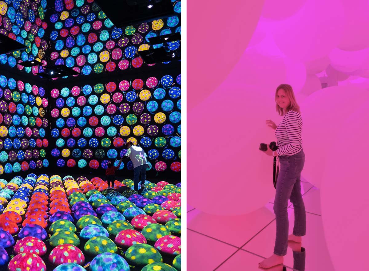 Als je op Instagram zit, heb je het ongetwijfeld voorbij zien komen: teamLab in Tokyo. teamLab is een museum voor digitale kunst, waarbij je door interactieve installaties loopt. Dat klinkt een beetje vaag, maar het is een gave ervaring. Tokyo heeft twee teamLab-locaties: teamLab Planets en teamLab Borderless. Je moet zelf even een vergelijking maken en bepalen welke locatie je wilt bezoeken. Ik koos voor Planets, omdat daar een installatie met water bij zit, waarbij je tussen de digitale koikarpers waadt. Maar uiteindelijk maakt het niet veel uit wat je kiest, het is allebei goed. Ik vond het echt een heel gave ervaring, mooier nog dan ik had verwacht. Wat wel uitmaakt is of je op tijd boekt of niet. Weet je op welke datum je wilt gaan, boek dan hier online meteen je kaartjes. teamLab is immens populair. Wij hadden het eerste tijdslot en dat was ideaal, want de drukte binnen viel ondanks de rij buiten erg mee.