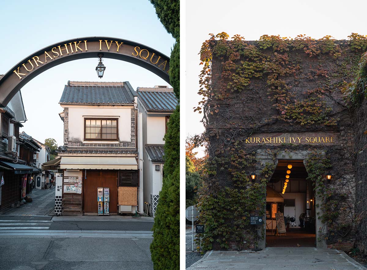 De bezienswaardigheden van Kurashiki kun je in een dag makkelijk zien, maar toch is het de moeite waard om hier een nacht te verblijven. Kurashiki is heel populair bij dagjesmensen en ik vond het fijn dat we ’s avonds en โs ochtends vroeg door de verlaten, sfeervol verlichte straten konden wandelen. We sliepen bij Kurashiki Ivy Square, het hotel aan Ivy Square. Het gebouw is mooi gerestaureerd, de kamers zijn prima en de locatie is top.