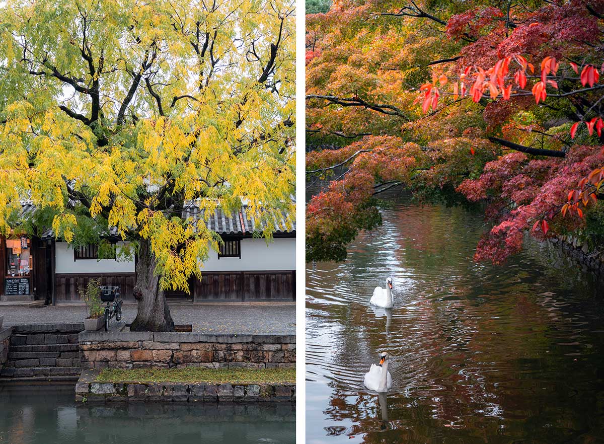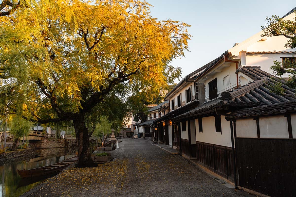 De beste reistijd voor Japan is het voorjaar en het najaar. Wij waren er in de herfst en de herfstkleuren in Kurashiki waren prachtig. Kurashiki is in de weekenden druk, dus als je meer rust zoekt, is een doordeweekse dag misschien een betere keuze.