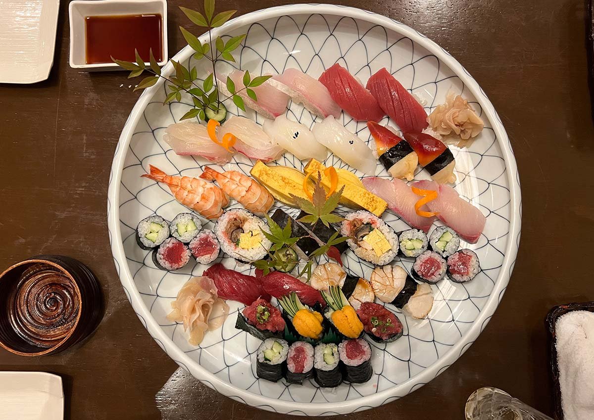 - Wij hadden voor het avondeten enorm zin in sushi en liepen daarom het oude centrum uit, naar Sushi Katsu. De charmante eigenaar spreekt een beetje Engels en stelt met liefde een enorme schaal vol heerlijke sushi voor je samen.