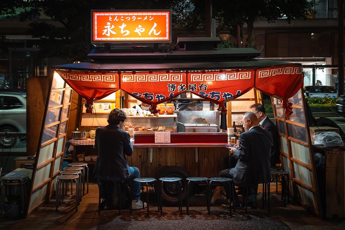Wij reisden van Kurashiki via Okayama met de shinkansen naar Fukuoka. Binnen twee uur kwamen we aan op het enorme treinstation JR Hakata. Fukuoka heeft 1,6 miljoen inwoners en is een stad die je steeds leuker gaat vinden naarmate je er langer bent. Er zijn verschillende tempels om te bezoeken, er is een strand, hippe winkels en een zeer levendige eetcultuur. Rond zonsondergang worden op verschillende plekken eetstalletjes, yatai, geopend en hier eet je zij aan zij met de locals onder andere de beroemde hakata ramen. Fukuoka voelt niet toeristisch aan en je ziet hier hoe het leven er in een gewone grote Japanse stad aan toegaat. In dit artikel over Fukuoka lees je al mijn tips.