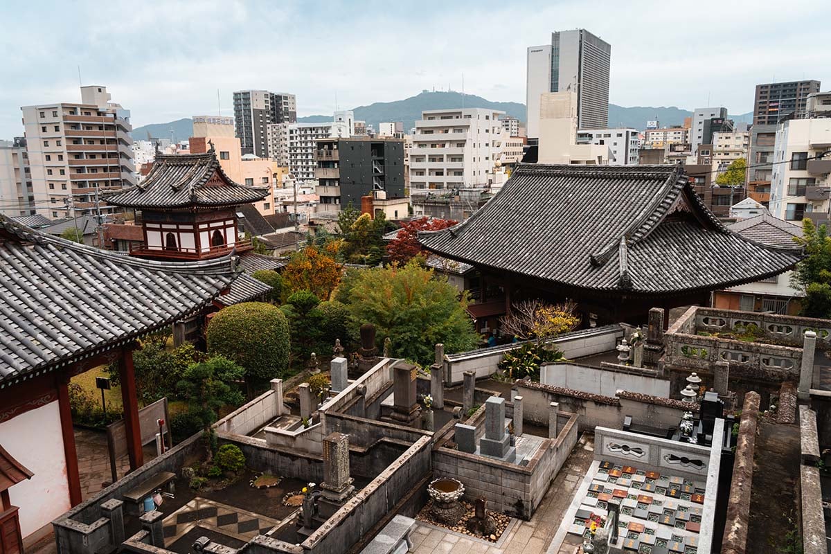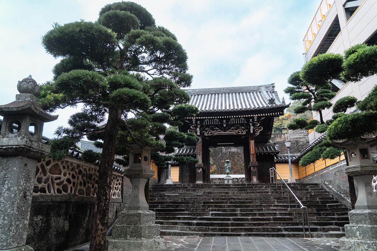 Nagasaki is natuurlijk ook gewoon een Japanse stad, dus bij de belangrijkste bezienswaardigheden horen ook tempels. Ik vond Kofukuji een hele mooie tempel. Het complex ligt op een heuvel en dateert uit 1620. Naast de tempel ligt een begraafplaats en je kunt hier een stuk omhoog lopen voor een mooi uitzicht over de stad. Ook een aanrader is de Sofukuji Temple, een Zen-Boeddhistische tempel met een karakteristieke rode tempelpoort in Chinese stijl. Niet zo gek, want de tempel werd ooit gebouwd voor de Chinese inwoners van Nagasaki. Het is een mooi complex om even rond te lopen. In dezelfde wijk vind je nog meer tempels, waaronder Daikoji.