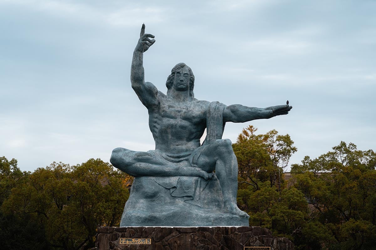 Op 9 augustus 1945 ontplofte boven Nagasaki de atoombom Fat Man, die afschuwelijke schade aanrichtte. Een groot deel van de stad werd weggevaagd en de bom kostte tienduizenden mensen het leven. Het Nagasaki Peace Park is aangelegd om blijvend aandacht te vragen voor vrede en je vindt hier een groot aantal beelden die staan voor vrede. Het bijna tien meter hoge Peace Statue is hรฉt symbool van de vredeswens van de inwoners van Nagasaki. Niet ver van het Peace Park ligt het Nagasaki Atomic Bomb Museum, dat het complete verhaal van de atoombom in Nagasaki vertelt. Wij bezochten eerder al het Atomic Museum in Hiroshima en dat van Nagasaki is net zo indrukwekkend.