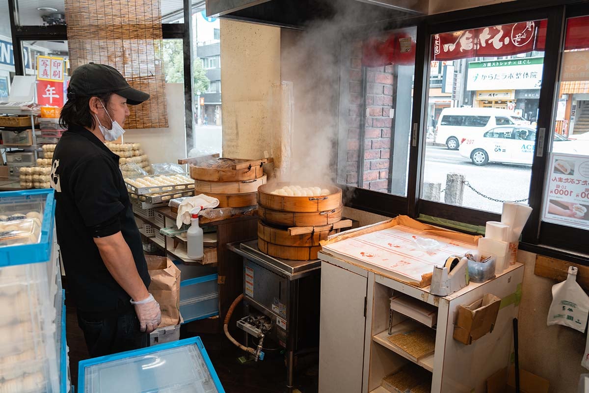 - Nagasaki Butaman verkoopt gestoomde broodjes gevuld met gekruid varkensvlees. Deze buns hebben een klein formaatje, maar zitten bomvol smaak. Ik dacht aan รฉรฉn broodje wel genoeg te hebben, maar ben teruggegaan voor een tweede ronde. Heerlijk!