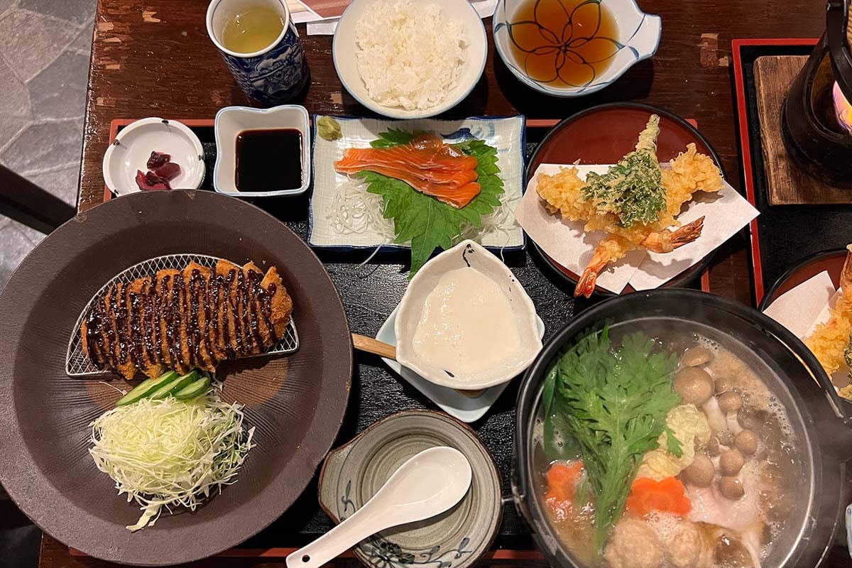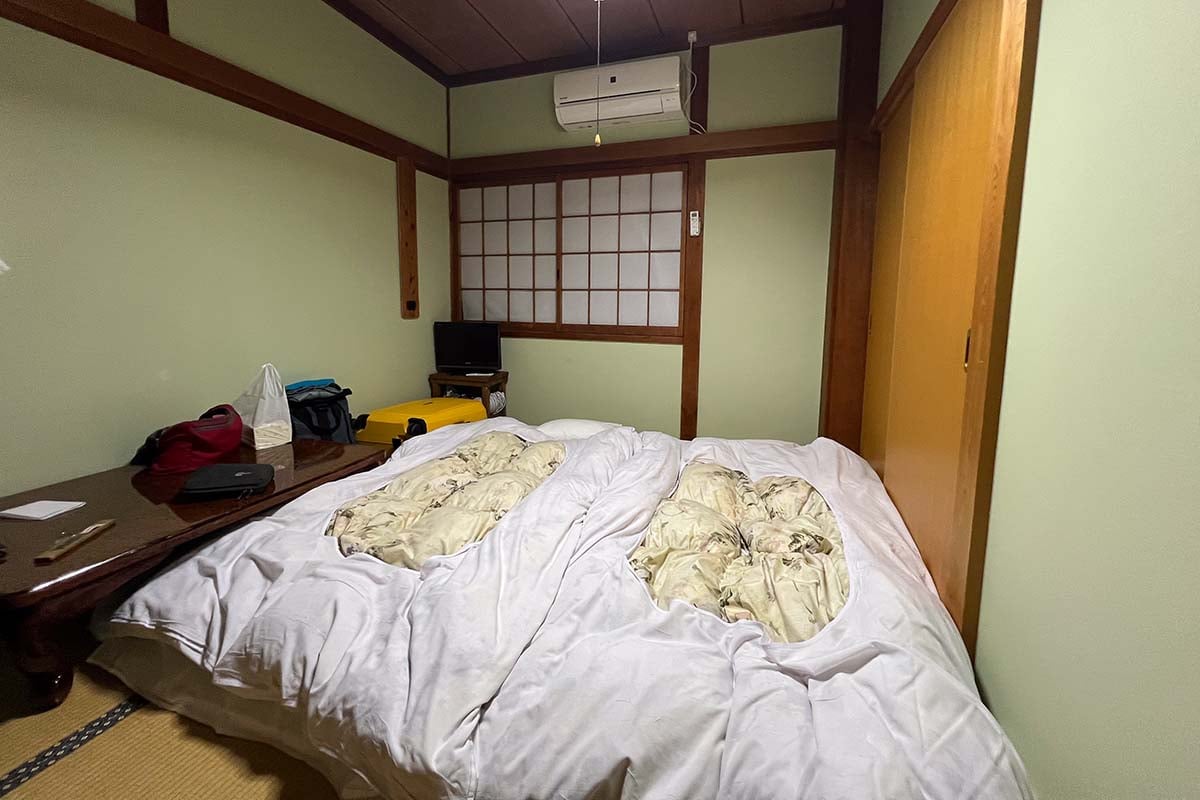 Magome heeft maar een paar overnachtingsplekken en wij boekten twee overnachtingen bij Magome Chaya. Dit is een traditionele Japanse herberg met eenvoudige kamers, comfortabele futons en gedeelde badkamers. Omdat alle restaurants in Magome om 17.00 uur dicht zijn, eet je ook je diner en ontbijt bij Magome Chaya. Helemaal geen straf, want het eten is fantastisch. Traditioneel Japans, heel gevarieerd en allemaal even lekker.