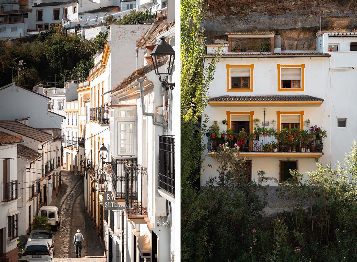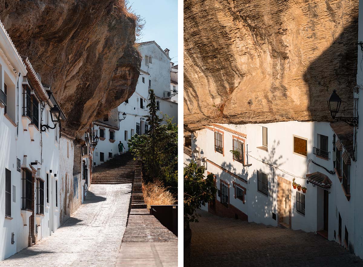 Net als de andere witte dorpen van Andalusië is ook Setenil heerlijk om gewoon doorheen te dwalen. Zo kom je vanzelf de mooiste straatjes tegen. Vaak redelijk steil, want het dorp is tegen de wanden van een kloof gebouwd. De beste plekken om de overhangende rotspartijen te zien, zijn de twee ‘hoofdstraten’ van Setenil: Calle Cuevas del Sol en Calle Cuevas de la Sombra, van elkaar gescheiden door een riviertje. Onder deze rotsen zijn witte huizen gebouwd, waar nu restaurants, cafeetjes en winkeltjes zijn gevestigd. Het is heel gaaf om te zien hoe de rotsen zijn gebruikt om woningen te bouwen.