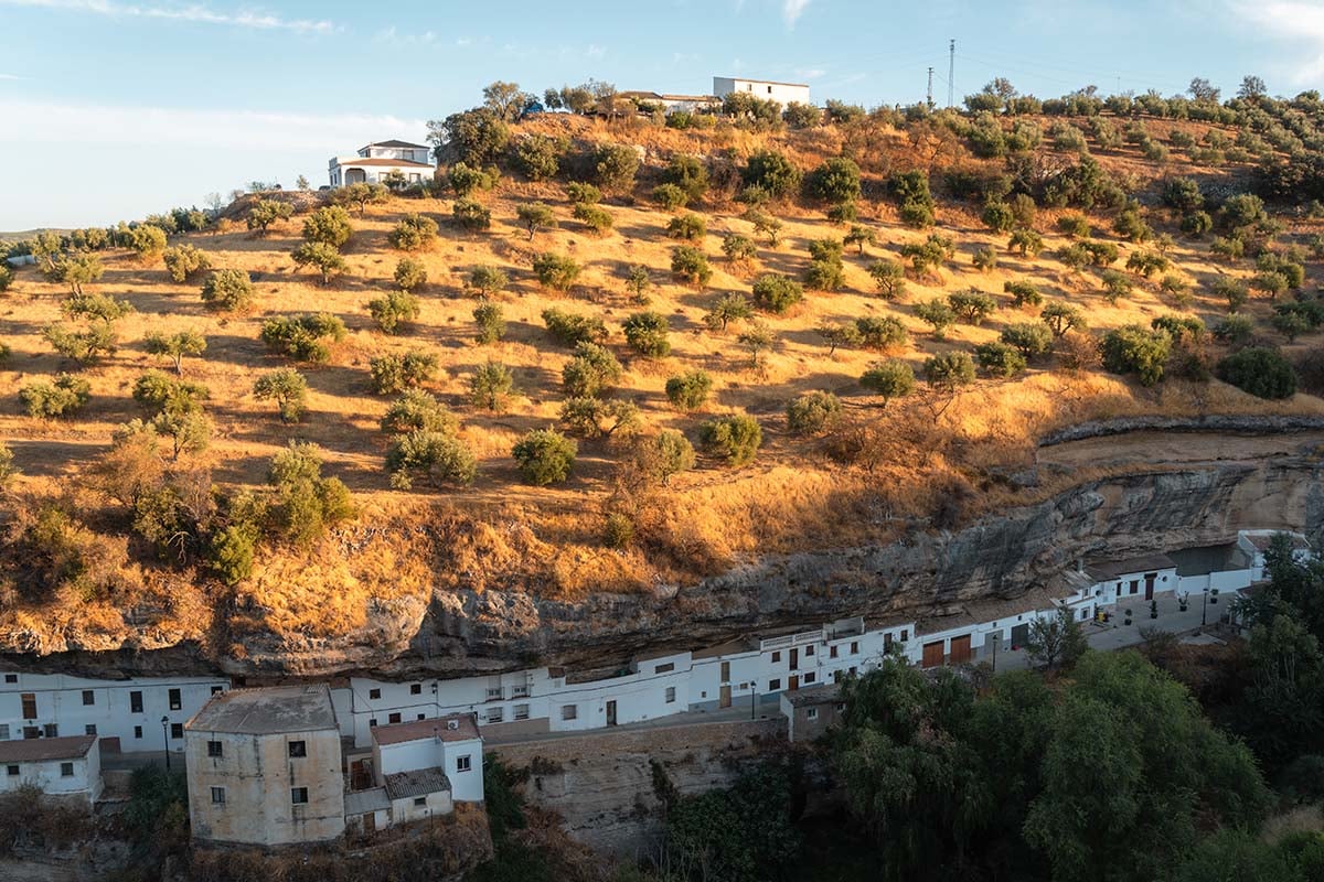Setenil de las Bodegas ligt in de provincie Cádiz in Andalusië. Het ligt in een kloof die is uitgesleten door de Guadalporcún-rivier. In het zachte kalksteen van de kloof ontstonden overhangende rotswanden, die mensen in de prehistorie al als schuilplaats gebruikten. De Romeinen en Moren profiteerden ook van de natuurlijke bescherming van de rotsen. In de middeleeuwen werden in de omgeving wijnranken geplant en de wijnboeren gebruikten de rotsen om wijnkelders te maken. De bewoners maakten de rotsen onderdeel van hun huizen en gebruikten ze als muren en daken. Zo is het huidige Setenil de las Bodegas ontstaan.