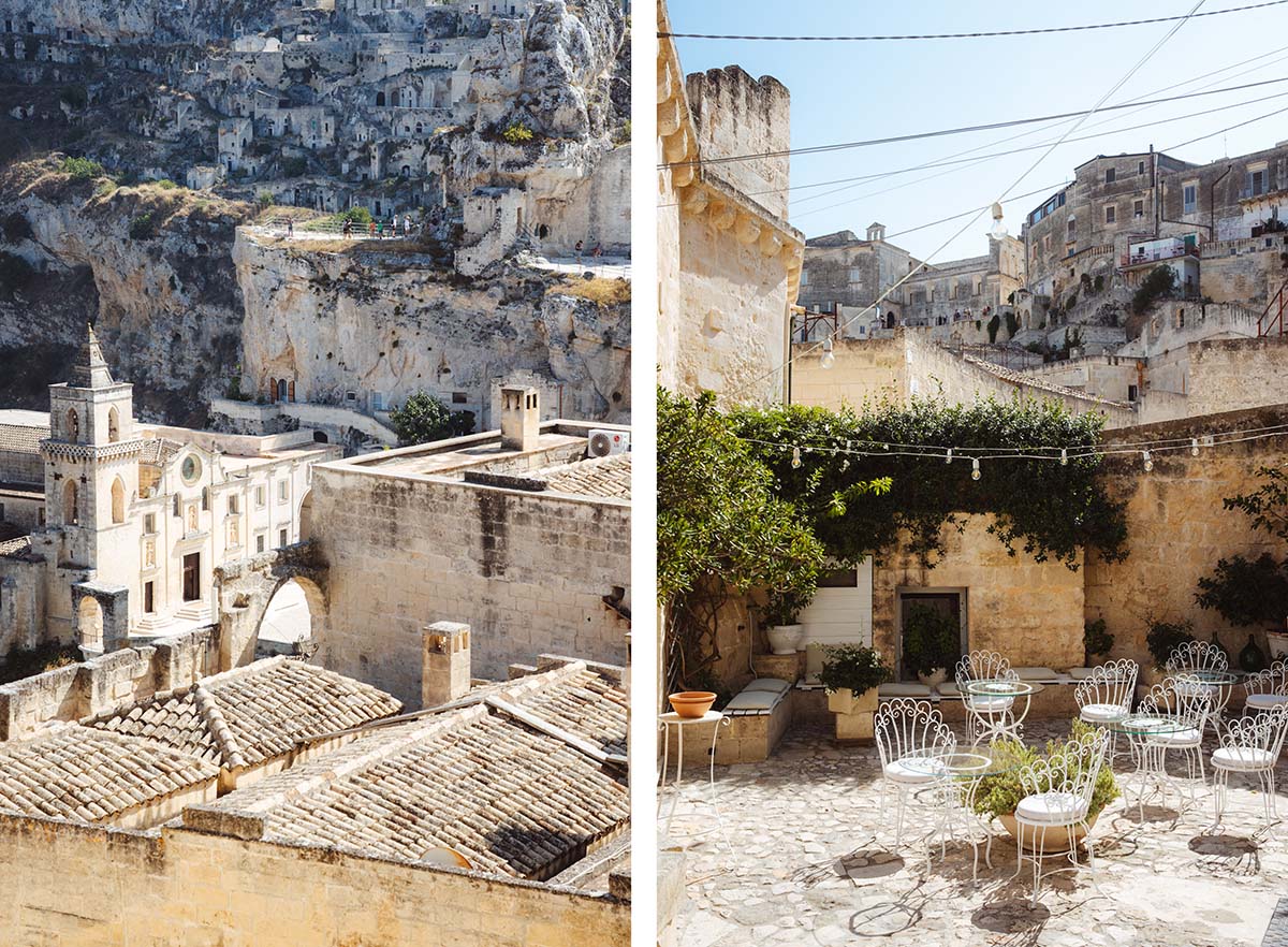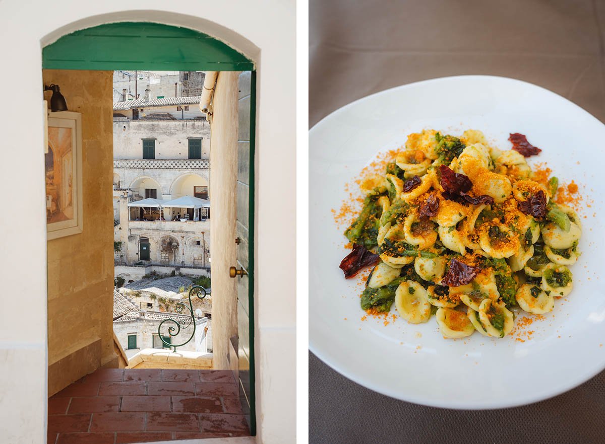 Matera is de stad van de grotwoningen en een aantal daarvan zijn verbouwd tot prachtige boutiquehotels. Wil je voor het ultieme luxe grothotel gaan, kies dan voor Sextantio Le Grotte Della Civita of Sant’Angelo Matera. Wij sliepen bij het fijne L’Infinito dei Sassi, een betaalbaar hotelletje op een toplocatie in het centrum. Vanaf ons balkon hadden we een spectaculair uitzicht over de sassi en daarmee een perfecte plek om de zonsopkomst te bewonderen.