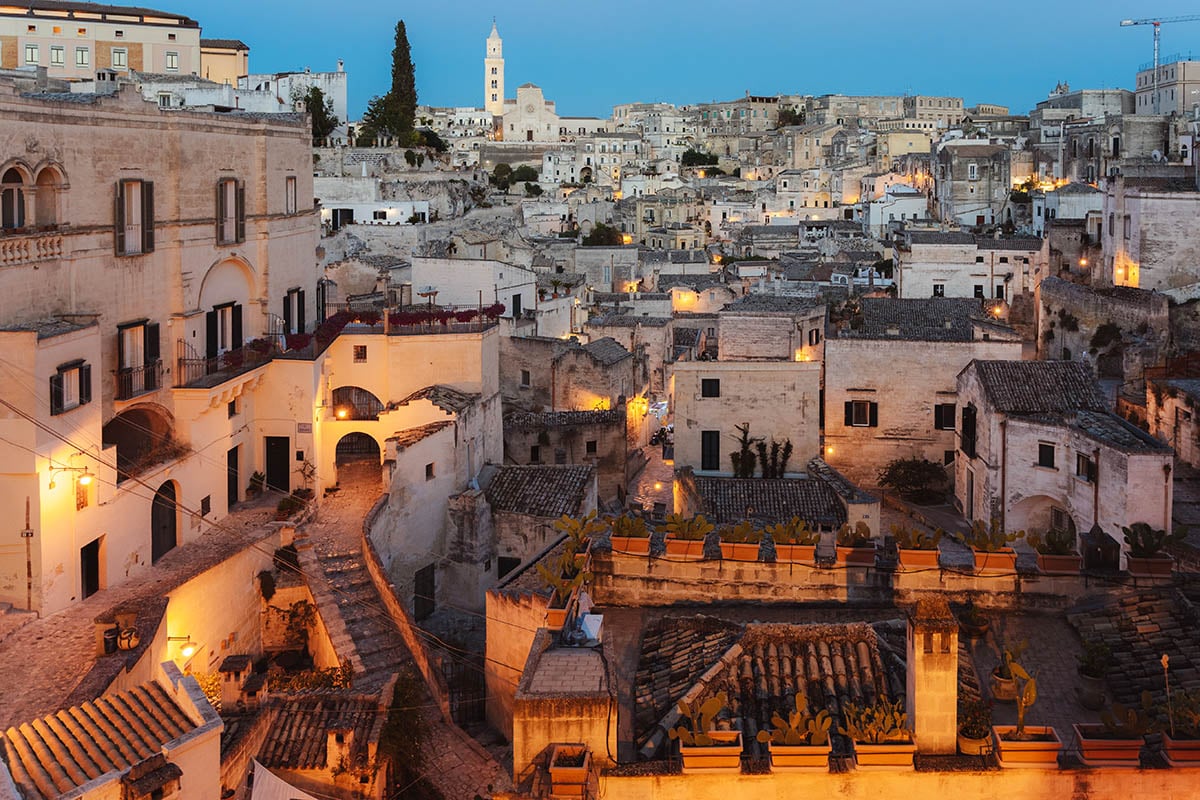 Matera is één van de oudste permanent bewoonde steden van de wereld. De eerste inwoners trokken zo’n negenduizend jaar geleden in de natuurlijke kalkstenen grotten in het gebied. Vanaf de 8e eeuw vestigden Byzantijnse monniken zich in de grotten van Matera en bouwden ze verschillende rotskerken met prachtige fresco’s. Matera was in haar lange historie in handen van onder andere de Grieken, de Romeinen, de Saracenen, de Normandiërs, maar dat zorgde niet voor rijkdom. Matera was eeuwenlang een arme stad, waar de inwoners onder de slechts denkbare omstandigheden en in grote armoede in kleine grotwoningen (sassi) woonden. Vaak met grote gezinnen en samen met hun vee.